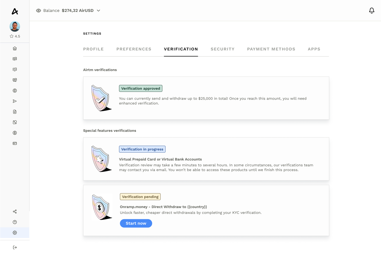 Inicia sesión en tu cuenta de Airtm (web o app).